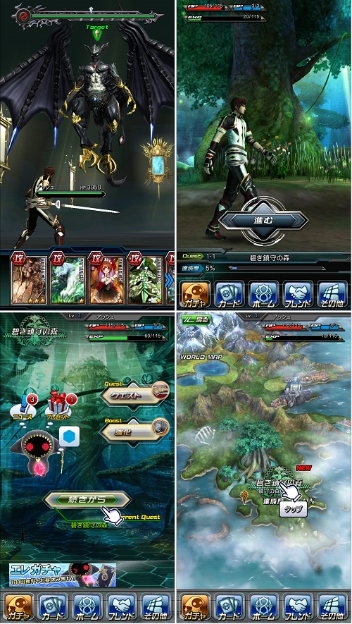 クエストマップでクエストを受託し、精霊カードを集めながら、様々な場所に冒険に出かけていく。フリック操作による「コマンドカウント・カードバトル」と3D演出による迫力のバトルが特徴となっている。
