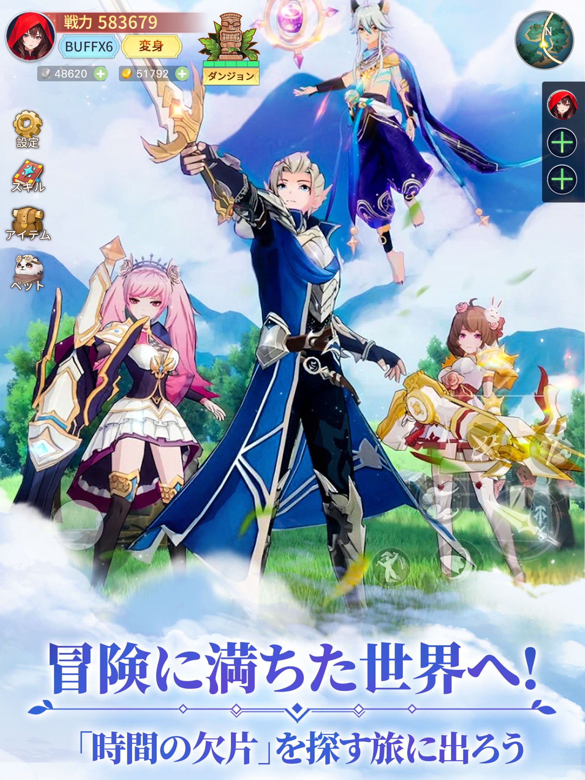 仲間と協力して「時間の欠片」を探す旅に出よう! 自分のペースでゲームを楽しめる『放置機能』も搭載!