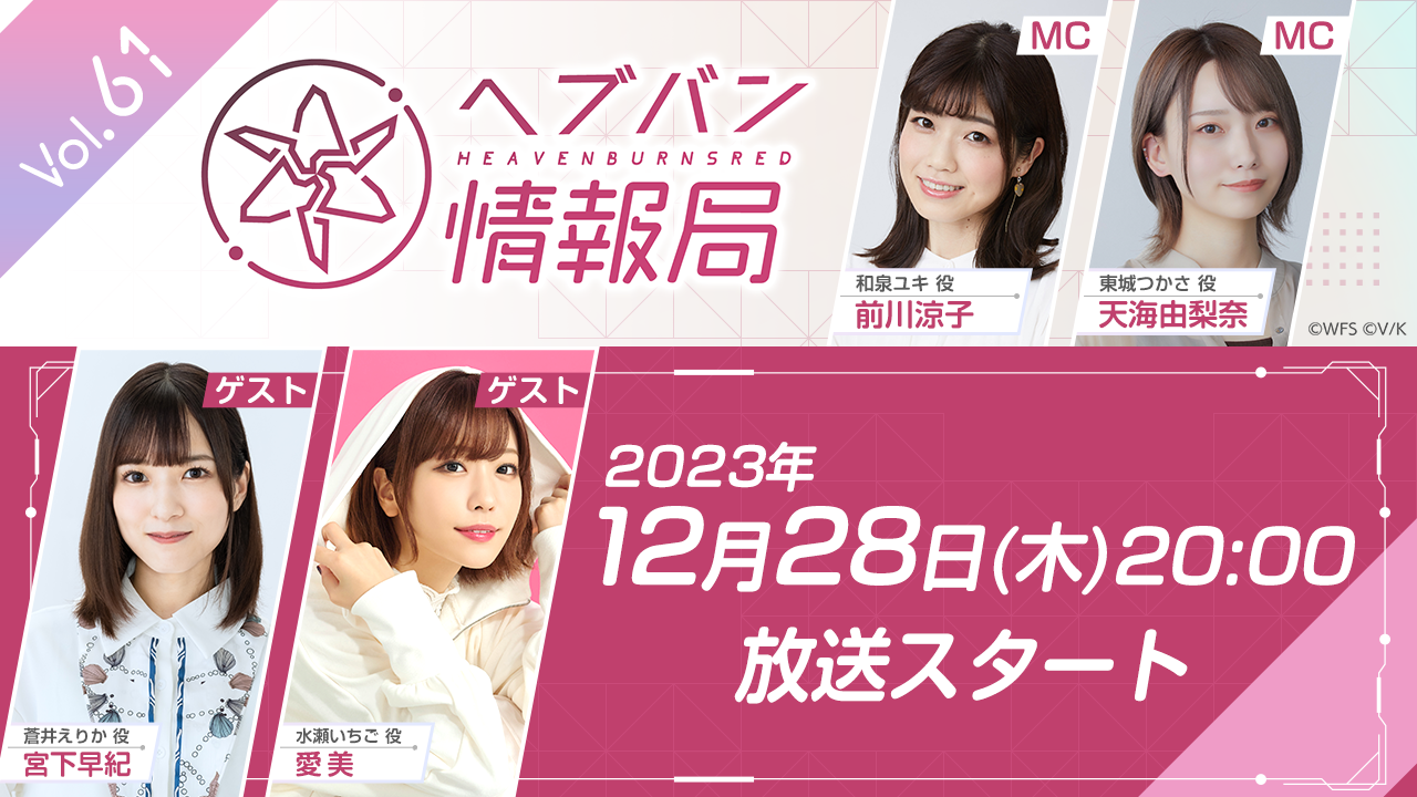 2023年12月28日(木)のヘブバン情報局に蒼井えりか役 宮下早紀さん、水瀬いちご役 愛美さんがゲストで登場!