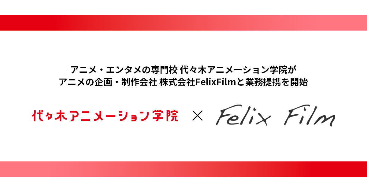 代々木アニメーション学院、アニメの企画・制作会社FelixFilmと業務提携…現場に即した高度な3DCGアニメの技術を持った人材育成のため