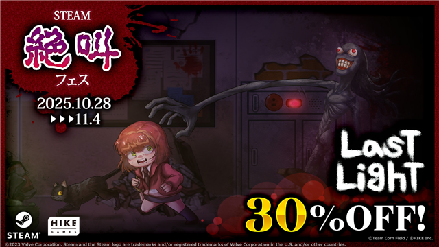 HIKE、ホラーアドベンチャー『Last Light』が「Steam絶叫フェス」に参戦 今なら30%オフで購入可能に!