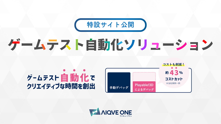 AIQVE ONE、AIと自動化技術を活用した「ゲームテスト自動化ソリューション」を提供開始…手動に比べて43%コスト削減したケースも