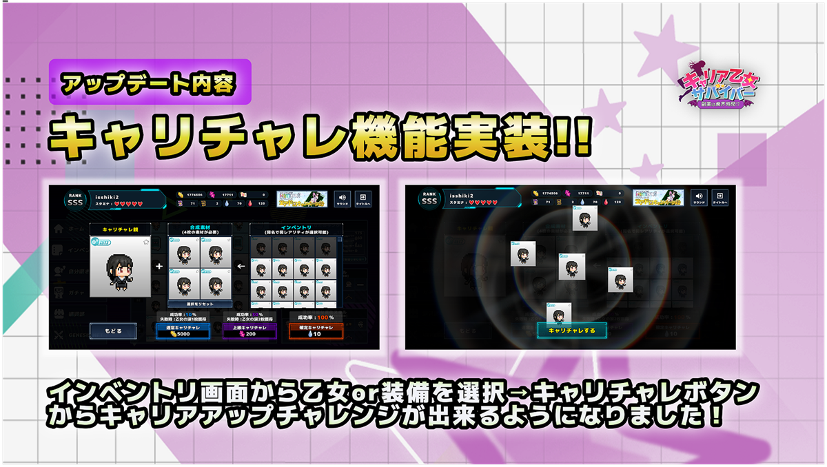 OpenWorld、ローグライクアクション『キャリア乙女サバイバー』にて新機能「キャリアチャレンジ」実装