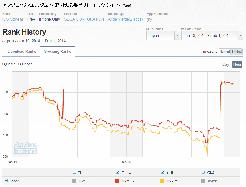 ■セガネットワークスの『アンジュ・ヴィエルジュ』が無料・売上共に急上昇