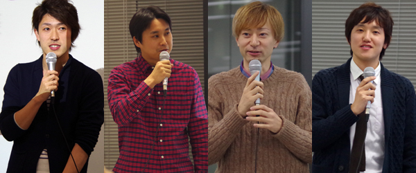 以上の豪華メンバーでパネルディスカッションは行われた。そして当日は、「2013年を振り返ってみてスマホゲームの変化」、「感銘を受けた他社ゲームアプリは?」、「2014年のスマートフォンゲーム市場はどうなる」、「今後どのようなスマホゲームを作りたいか?」といった、バラエティに富んだ4つの議題のなか、それぞれ思い思いの意見を述べた。