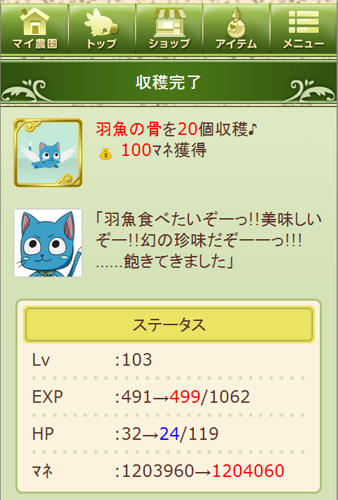 | フェアリーテイルで期間中、1日1回ギルド掲示板に書き込み | 回復薬×1個 3h育つ薬×1個 |
