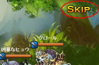 戦闘操作不要なので見てるだけ・・・。画面を連打しても早く進みやしない! そんなことを考えているあなたに「SKIP」と「高速戦闘」機能をご紹介します。