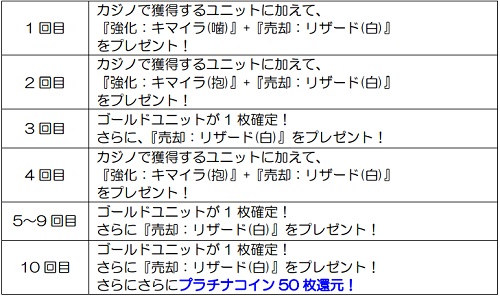 ※「プラチナカジノ 10」のみが対象となる。プレゼントは「プレゼント BOX」へ送付される。