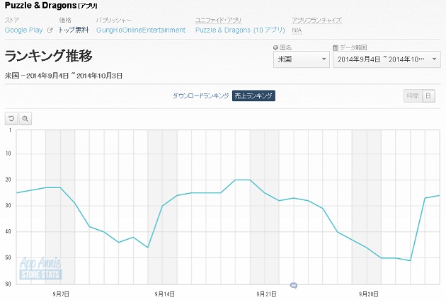 このほか、ガンホー・オンライン・エンターテイメント『Puzzle & Dragons(パズル&ドラゴンズ)』もTOP30に復帰した。日本と同じく「ゴッドフェス」を実施しており、これに伴って売り上げが伸びたものとみられる。
