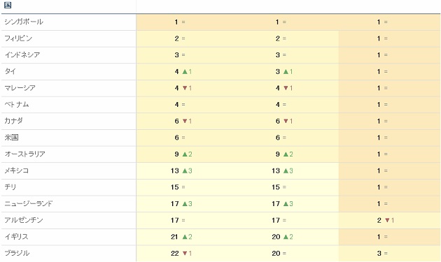 【各国での売上ランキングの状況】