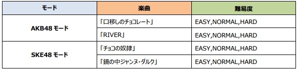 ・楽曲「口移しのチョコレート(AKB48モード)」「チョコの奴隷(SKE48モード)」HARDステージプレイの条件報酬