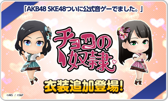 S&Pは、2月5日、AKB48、SKE48の人気楽曲を起用したスマートフォン向けリズムアクションアプリ『AKB48 SKE48ついに公式音ゲーでました。』において、新楽曲「口移しのチョコレート(AKB48モード)」「チョコの奴隷(SKE48モード)」を実装したことを発表した。また、新楽曲実装に併せて、「バレンタインイベント」を実施したことも発表している。
