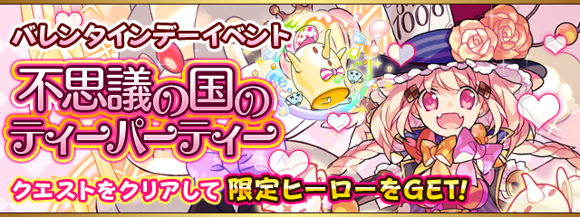 サイバーコネクトツー(CC2)とドリコム<3793>は、2月2日、『フルボッコヒーローズX』において、約一年ぶりに「不思議の国のティーパーティー」がバレンタインイベントとして復刻したことを発表した。
