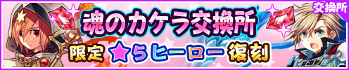 クエストや、ヒーロー売却時に得られる「魂のカケラ」を集めることで交換できる、人気の「魂のカケラ」ヒーローが多くのリクエストにお応えし、期間限定で復刻! ★5魔術師の「ローゼンクロイツ」と★5騎士「ジークフリード」を再び入手できるチャンスです。