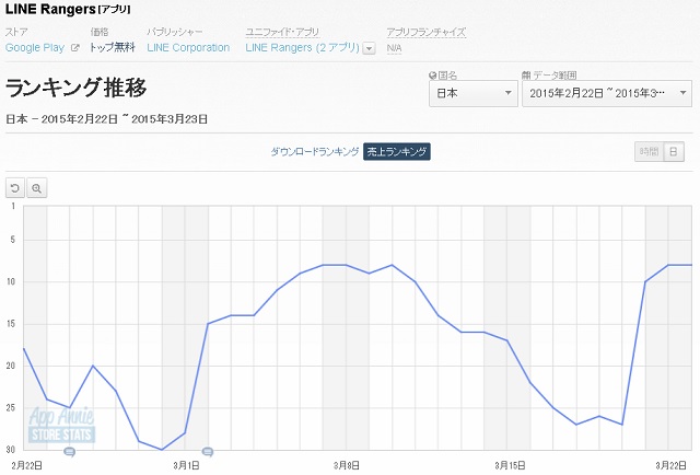 【Google Playランキング(3/23)】LINE『LINEレンジャー』が27位→8位に上昇 スクエニ『スクールガールストライカーズ』もTOP10復帰