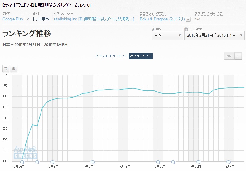 ほか、トップ30圏外ではあるが、イグニスの『ぼくとドラゴン』が53位と自己最高位を更新し、トップ50入りを視野にとらえてきた。App Store売上ランキングでは、先んじて一時ではあるがトップ50入りも果たすなど着実に順位を上げてきたが、Google Playランキングでも着実に順位を上げてきている。