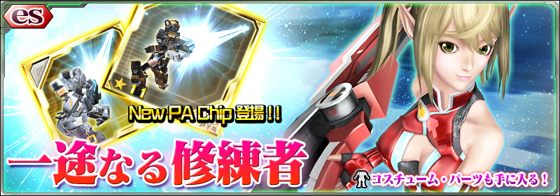 セガゲームスは、スマートフォン用RPG『ファンタシースターオンライン2 es(以下、PSO2es)』において、連動機能「マイショップ」などを追加した大型アップデートを実施した。さらに、『PSO2es』に登場するチップを対象にした「チップ総選挙」や、大型アップデートを記念した各種キャンペーンの開催、「エコー<レイドスフィーダ>」、★11必殺技チップ「スフィアイレイザーEX(大砲)」が登場する新スクラッチ「一途なる修練者」も配信。