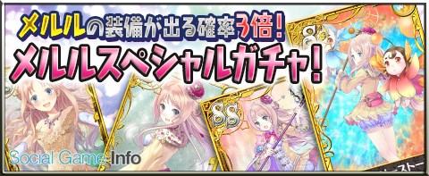 同時に、期間限定スペシャルガチャを開始した。「メルル」の装備が当たる確率が他のキャラクターの3倍になっているほか、通常のレアガチャでは出ないランク SSの装備が出るようになっている。加えて、ガチャで出るアイテムに「マスタースキル」「パワーヒッター」「ゴッドハンド」などのレア特性が付きやすくなっている。さらに、ガチャを「10回引く」と「メルル」のランクS装備が必ず1つ以上当たる。