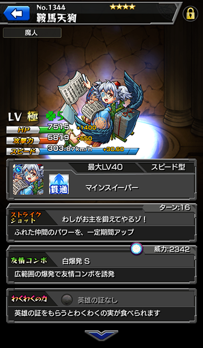「静御前」と「鞍馬天狗」の進化合成前ステータスを紹介!