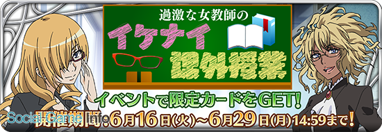 期間限定イベント「過激な女教師のイケナイ課外授業」には、「初級」から「超上級」まで各キャラ5種ずつの難易度別クエストが用意されている。難易度に応じて階層数やドロップアイテムなどが異なり、限定カードのドロップ率は上位級の方が高くなっている。すべてのクエストにおいて、最終階層に登場するボスを撃破すると確率で限定カード(「初級」「中級」「上級」:Lv3、「超級」「超上級」:Lv4)をドロップする。限定カードに使用すると大量の経験値を獲得できる「教師ゲコ太カード」で強化しながら、専用進化素材を必要な分だけ集めてLv5カードへと進化させよう。出現する敵の属性は、オリアナクエストが温和・冷静・純真、シェリークエストが熱血・矜持・純真となっている。