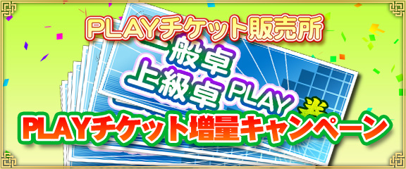 キャンペーン内容:期間中は下記の通り PLAY チケットの販売価格は据置きのまま枚数を増量致します。