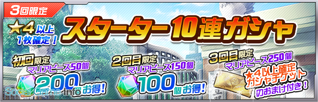 通常マリアピース250個で引ける10連ガシャが、キャンペーン期間中にお得に引けるようになる。