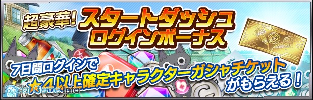 ゲーム開始から7日間、クエストや強化に役立つアイテムが貰えるログインボーナスキャンペーンを実施する。毎日ログインする事で、最終日には☆4以上のキャラクターが必ず出現する☆4以上確定ガシャチケット配布する。