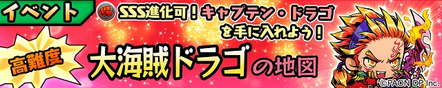 SR「灼熱赤龍のキャプテン・ドラゴ(以下ドラゴ)」は、課金ガチャでしか手に入らなかったキャラだが、期間限定でイベントに登場。ステージクリアで進化素材、限定ボスへの挑戦状をGET!