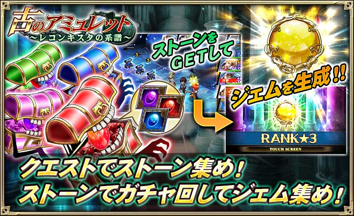 内容:騎士団戦で獲得した騎士団スコアを集計し、ランキングを決定するイベント“レコンキスタの称号”がより戦術の幅を持たせる新機能“アミュレット”を実装して新イベントとして登場!