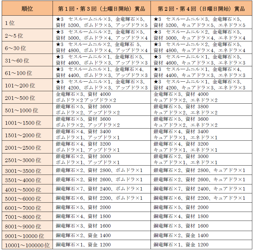 賞品の配付日程は、下記の予定で順次配付します。ランキング報酬が届くまでお時間をいただく場合がありますのでご了承ください。
