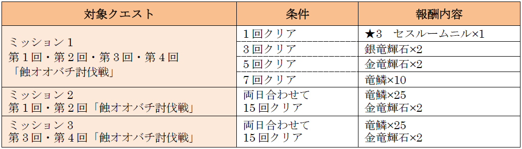 ※「蝕オオバチ討伐戦」のクリア数に応じた個人報酬は、後日の配付となります。