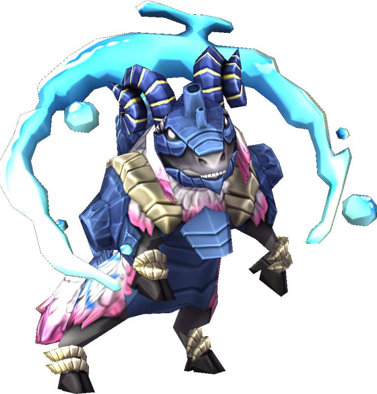 陽光に照らされた湖の遺跡から突然現れたという鳥獣類。背からは噴水のように水を噴き出す。また子供の頃から進化を繰り返して大人になるという珍しい特徴を持つ。