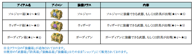 ■選んだクラスの武器もしくは防具が確実に入手できる!各クラスごとの「装備箱」が追加■