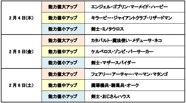 2月4日より3日間、ランキング報酬が毎日もらえる「毎日決着リーグ」を開催する。また、リーグで対象キャラをリーダーにすると、能力値やスキル発動率が上昇する「日替わりリーダーハンデキャップバトル」を同時開催する。毎日変わる対象キャラをチェックしてリーグに挑み、ランキング上位を目指そう!