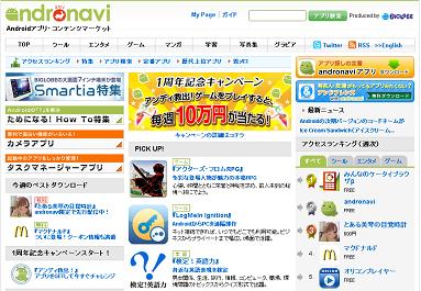 「andronavi(アンドロナビ)」は、ビッグローブが2010年1月7日よりオープンしたAndroid向けアプリのコンテンツマーケット。サイト上には、アプリや端末のレビューのほか、ニュースや特集記事などが掲載されており、ユーザーは、複数のサイトを検索することなく、Androidアプリを探すことができるという。