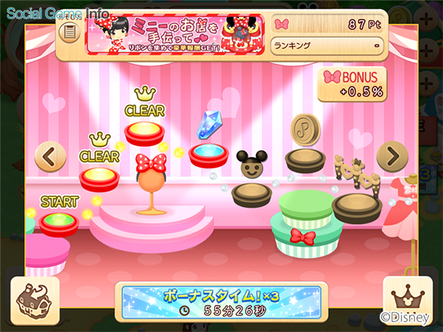 ミニードットのかわいいデコアイテムが登場するイベント「ミニーのお店を手伝って」を3月15日より開催する。ウィッシュボードやゲストのお願いを叶えると集まるリボンで、ミニーマウスのお店を有名にしよう。リボンを沢山集めてランキングに入賞すると、ミニーマウスになりきれる特別なアバターが手に入る。さらに、1日に3回訪れるボーナスタイムでは、集まるリボンがいつもの3倍になる。ポイント5倍のスーパーボーナスタイムに