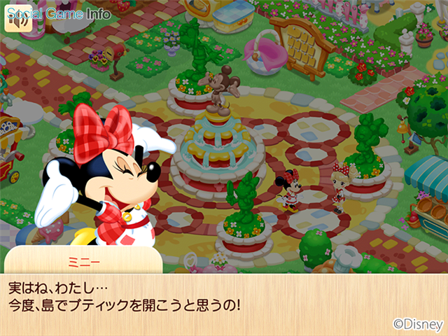 ▲おしゃれ大好きなミニーマウスがみんなのために期間限定でブティックを開店。みんなのお願いをかなえてミニーマウスのお店を有名にしよう!