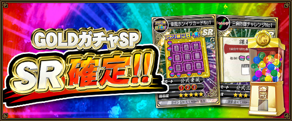 「GOLD ガチャSP SR 確定キャンペーン」では、期間中「GOLD ガチャ SP」から排出されるカードアイテムが全てSRとなる。