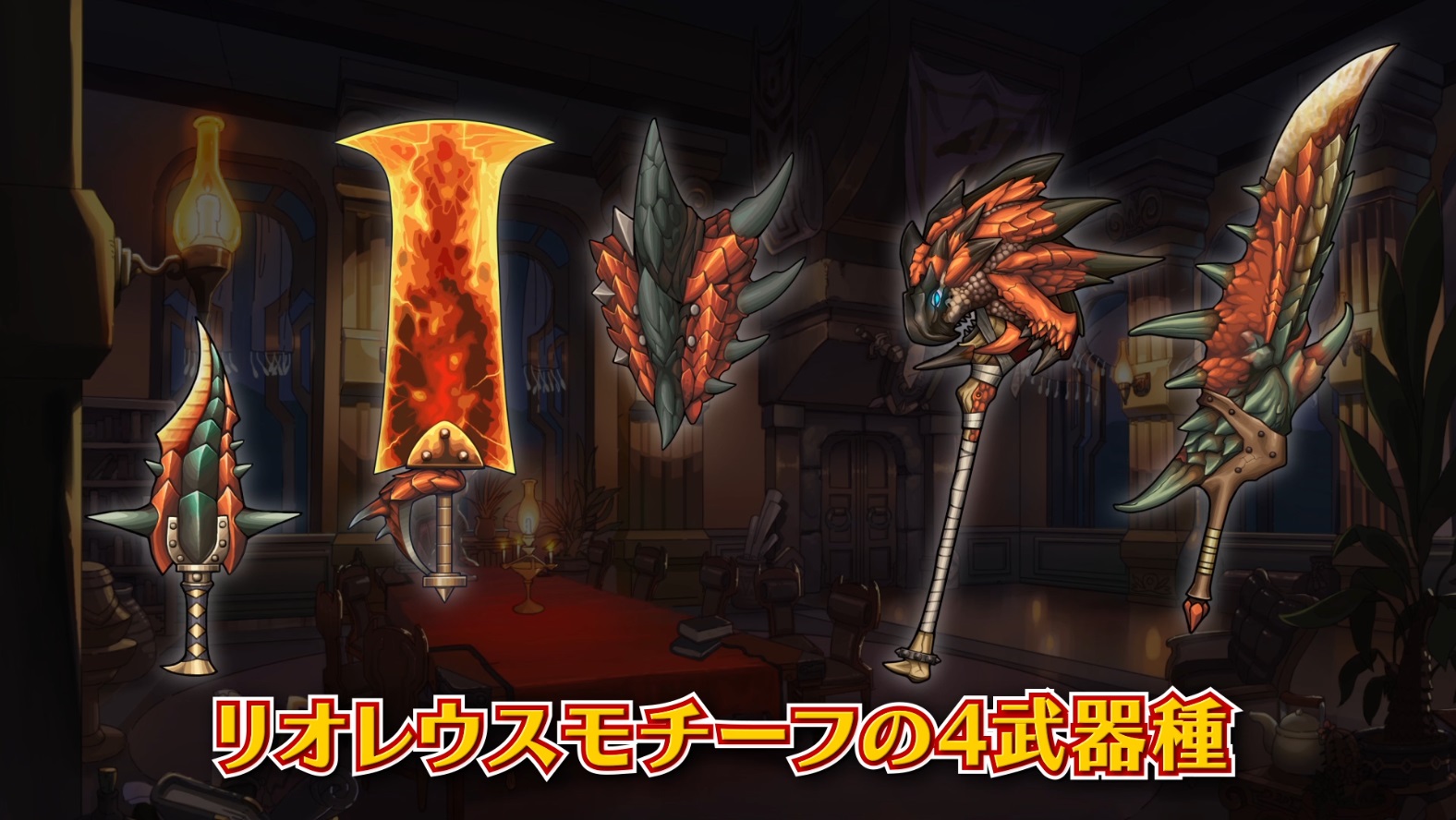 期間中入手できるコラボ武器は、人気モンスター「リオレウス」をモチーフとしたBOF6オリジナルの武器!そのすべてが火属性の武器の中でも高い性能を誇ります。この機会をお見逃しなく!