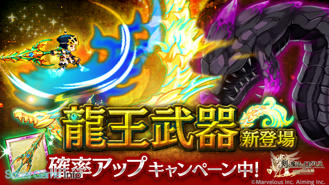 マーベラス、『剣と魔法のログレス いにしえの女神』で「龍王確率アップキャンペーン」を開催 新武器が手に入る「龍王の覚醒」を実施