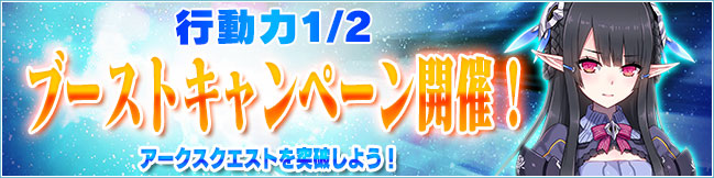 配信内容 :「アークスクエスト」の消費行動力が 1/2 となるキャンペーンを開催いたします。