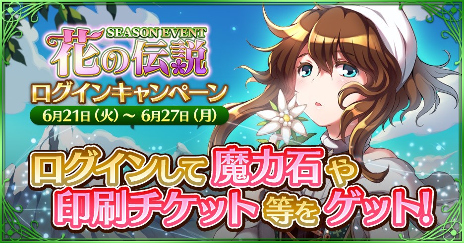 限定ログインキャンペーンを実施中!ログインして魔力石や印刷チケット等豪華報酬をゲットできます!上記の内容についての詳細は公式サイトをご覧ください。