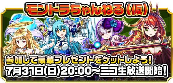 2016年7月31日(日)、ニコニコ生放送にて「モンドラチャンネル(仮)~第3回~」を配信いたします。第0回から始まった当番組では、毎回ゲストMCに声優さんを迎え、初心者の方にも分かりやすい解説を交え、クエストに挑戦します。また、放送中リアルタイムでユーザーの方々との対戦や、様々なアイテムが貰えるイベントなど多数の企画をご用意しております。まだ公開されていない最新情報の告知をすることもあるので、ぜひ、当日生配信にてお楽しみください。