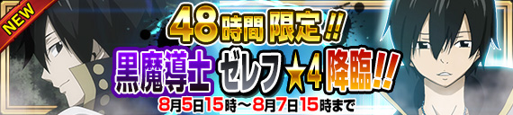 また妖精石ガチャでは、『【黒魔導士】ゼレフ』が登場する48時間限定ガチャキャンペーンを実施します。ついに最強の魔導士が登場!このチャンスに限定魔導士を獲得し強力な魔法も獲得しましょう!!