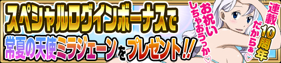キャンペーン期間中、ログインするだけで以下のアイテムなどがプレゼントされます。今回もレア4魔導士のミラジェーンがプレゼントに入っています。このチャンスに限定魔導士を獲得しましょう!!