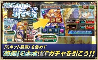専用クエスト「覇者の塔」が登場し、各階層で待ち受ける番人を倒しながら最上階への到達を目指すイベント。各階層に登場する番人を倒すと、イベント期間中に登場する“絢爛!ミネオリアガチャ”に挑戦できる「ミネット勲章」や、豪華アイテムを入手することができる。“絢爛!ミネオリアガチャ”からは、本イベント限定のSSRユニット「ヴェロニク」をはじめとしたユニットを入手することができる。