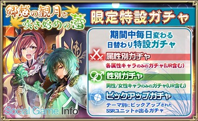 さらに、イベント期間中は男女別や属性別などの期間限定ガチャを配信する。
