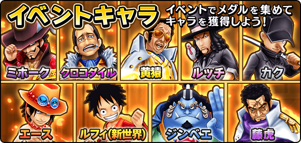 本日から「サウザンドフェス」を開催中です。このイベントでは、「エース」や「ミホーク」など9人の「キャラメダル」が手に入るキャラ獲得イベントや、それぞれの必殺技付きシーンカードが登場するイベントガシャを開催中です。また、「サウザンドフェス」の開催を記念して「虹のコイン」30枚をプレゼント!この機会に、「エース」や「ミホーク」などを仲間にしよう!