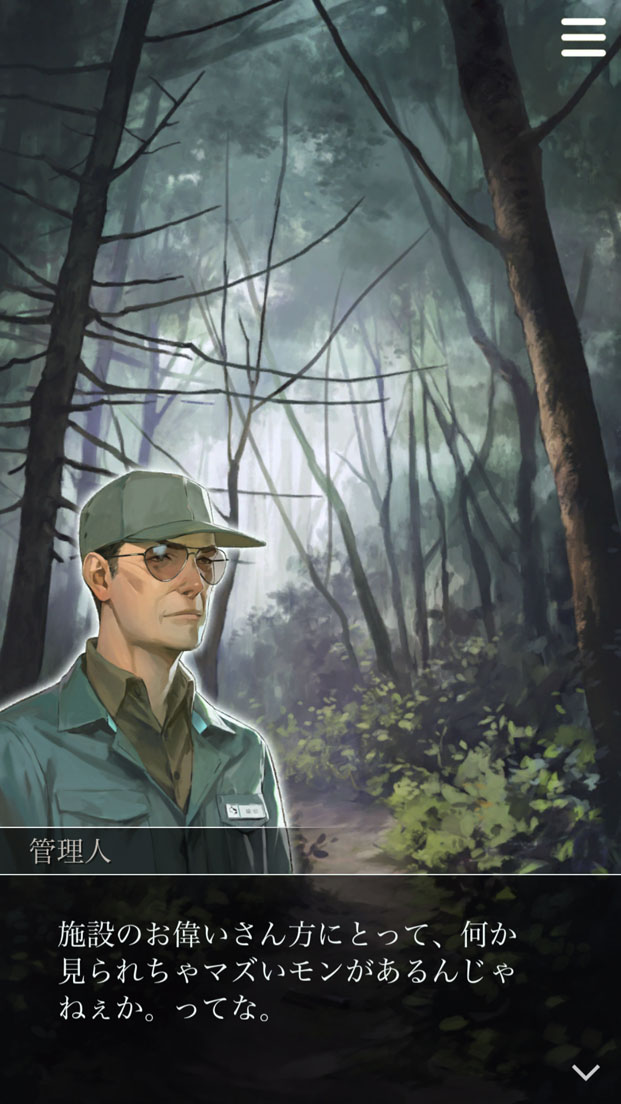偶然見つけたあの“場所” について、雑木林の管理人 が、不穏な噂を教えてくれた。 あなたは意外な真実の手が かりを得ることになる...。