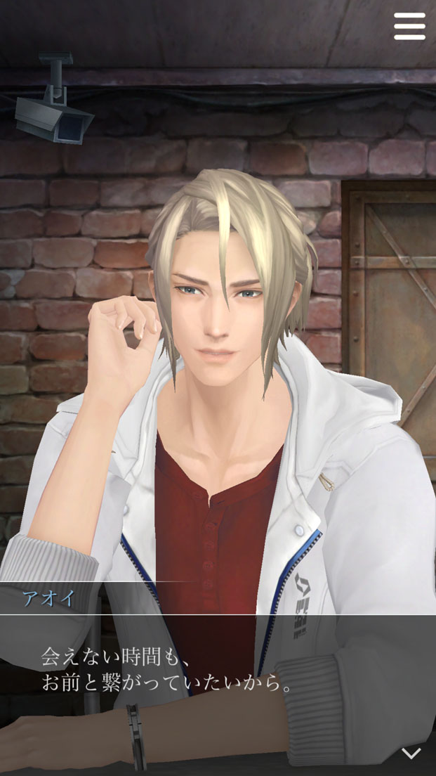 アオイ編でもこれまでと同じく、「面会」では選択肢とタッチ操作を用いた体感 コミュニケーションができます。自分らしい選択をしながら、タッチマークが出たら、 指先などを使って、画面にタッチ!今度はなんと「唇」で!? アオイは、ハルト とはまた違ったコミュニケーションが楽しめます。触れたくても触れられない…。 ガラス越しに彼を感じながら、甘く切ない時が過ごせます。